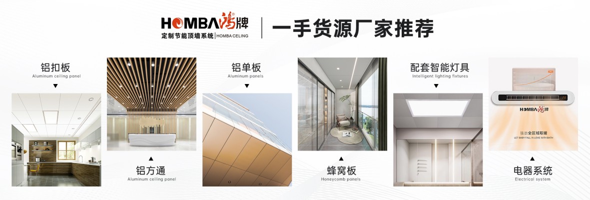 公司總部設在廣州南沙,總生產基地位于廣西玉林,在香港、東莞、深圳、惠州、佛山等地設有服務中心,廠部總占地面積達40000平方米。公司從美國引進全套HOMBA Ceiling生產管理技術和液壓,輥壓設備,并擁有一批從事鋁合金天花,電器和幕墻近二十年加工制作經驗的高素質技術人員,為公司產品品質提供強有力的保障.產品主要包括:鋁扣板、鋁蜂窩板、鋁方通、鋁單板、鋁型材、鋁條扣、鋁格柵、集成電器以及各種非標造型的天花鋁板。各產品均具精巧的結構及吊裝系統(tǒng),并可根據(jù)設計要求,精確加工成弧形、梯形、跌級等多種造型的裝飾要求,